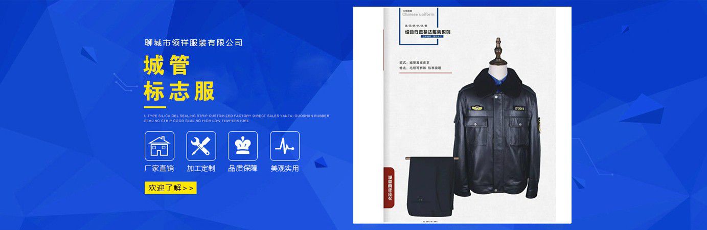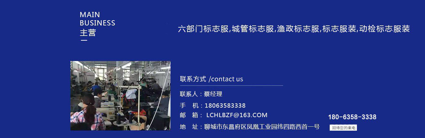 聊城市領(lǐng)祥服裝有限公司主主要生產(chǎn)六部門標志服,城管標志服,漁政標志服,標志服裝,動檢標志服裝,標志服裝廠等產(chǎn)品,款式新穎,做工精細,可根據(jù)用戶要求批量定做。公司成立以來,已為各行業(yè)數(shù)千家企業(yè)、集團承制了職業(yè)制服。 多年來,我公司本著“質(zhì)優(yōu)高效,守約重譽”的經(jīng)營理念給廣大新老客戶提供質(zhì)優(yōu)價廉的產(chǎn)品和售后服務(wù)。憑借良好的信譽,雄厚的實力,優(yōu)質(zhì)的產(chǎn)品,低廉的價格愿與新老客戶真誠協(xié)作,業(yè)務(wù)遍布全國各地,是山東優(yōu)秀的標志服裝廠,歡迎新老客戶參觀考察!  公司生產(chǎn)的職業(yè)服飾均以標準的質(zhì)量,頂尖精湛的技術(shù)為基礎(chǔ),以客戶的滿意為根本,全程采用電腦輔助設(shè)計制服,成衣、服飾配件(領(lǐng)帶,領(lǐng)結(jié),紐扣,帽子,企業(yè)標志等)均可定織定染,普遍采用進口或合資優(yōu)質(zhì)輔料,尺碼按身高和體型劃分或量體定制。每一道工序,每一個生產(chǎn)環(huán)節(jié)精雕細琢,充分體現(xiàn)了以質(zhì)量求生存,以信譽求發(fā)展的理念。并以準確的市場定位,先進的營銷理念,贏得廣大客戶的信賴支持!  公司宗旨:“團結(jié)、服務(wù)、創(chuàng)新”。公司方針:“專業(yè)創(chuàng)造輝煌,質(zhì)量保證未來,用心換得人心”。熱誠歡迎業(yè)界同仁來公司洽談!...
